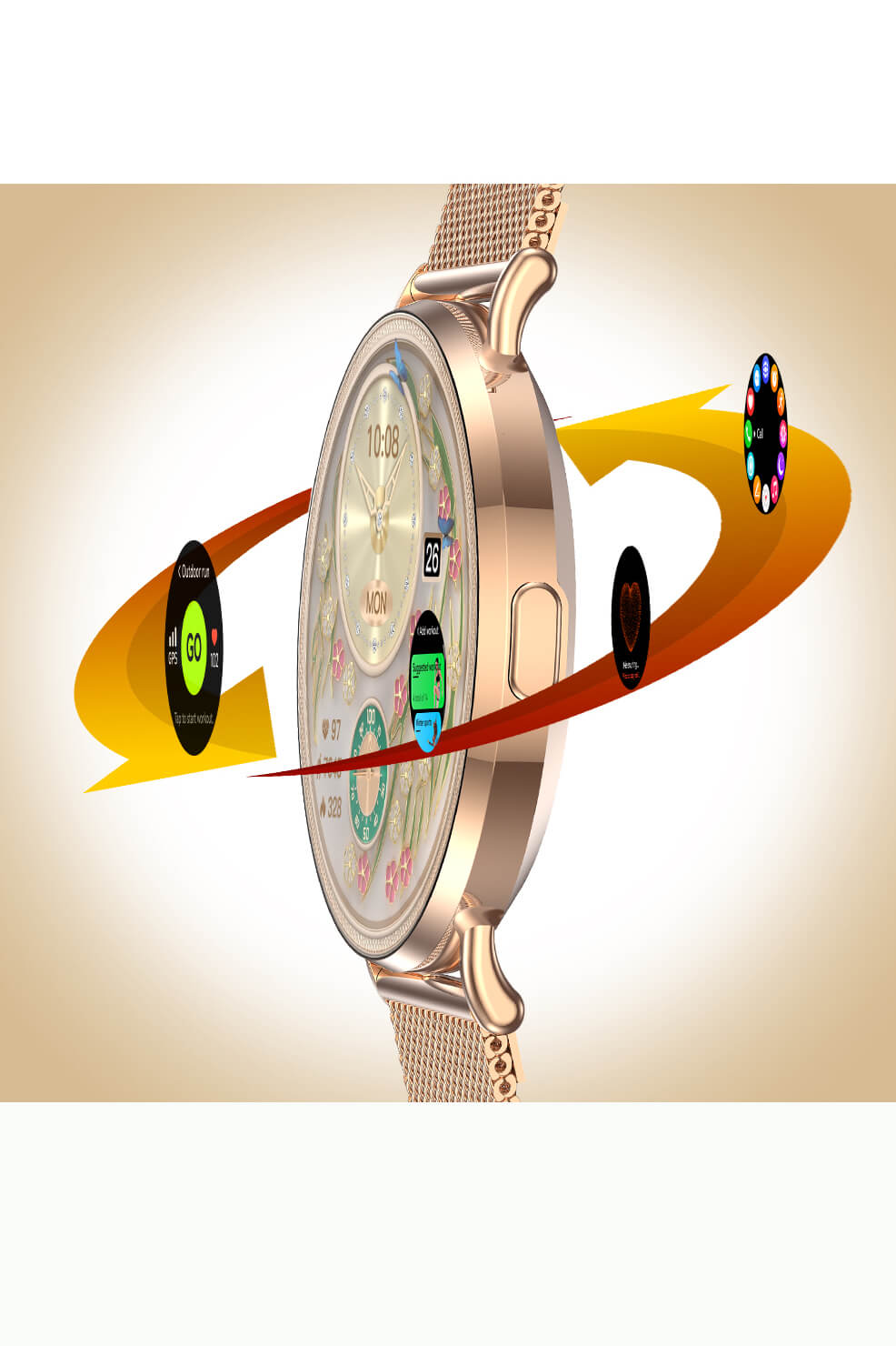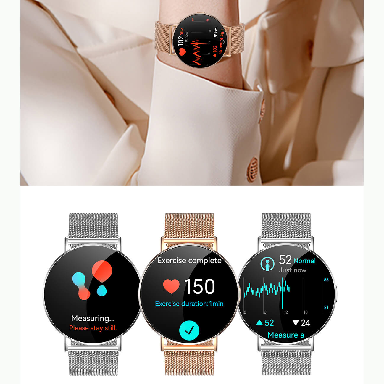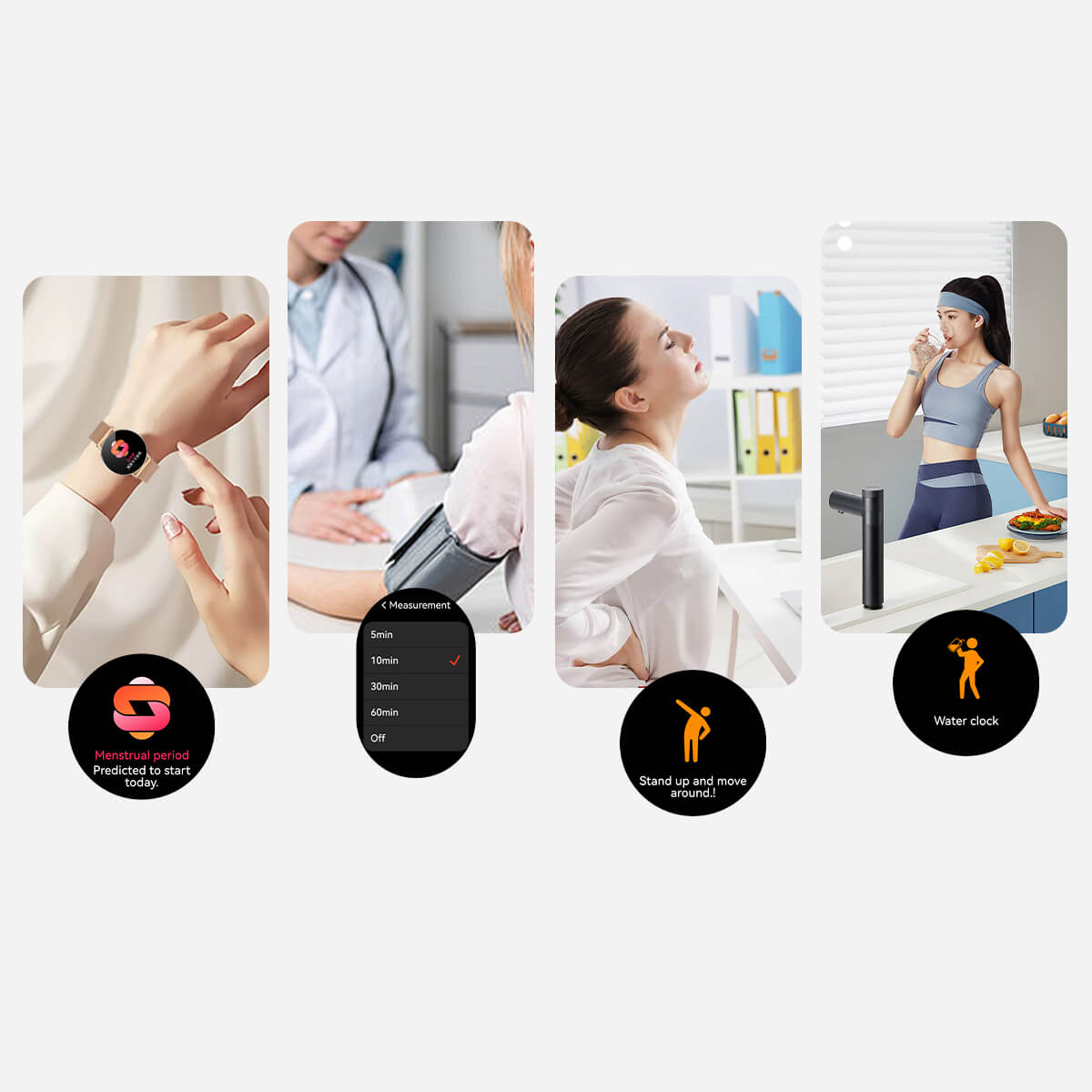 Oltre alle tradizionali funzioni di monitoraggio della frequenza cardiaca e dell’ossigeno nel sangue, abbiamo aggiunto il rilevamento delle emozioni e dello stress per le donne, oltre alle funzioni di allenamento respiratorio. Un umore più rilassato contribuisce a una vita migliore e più sana.
