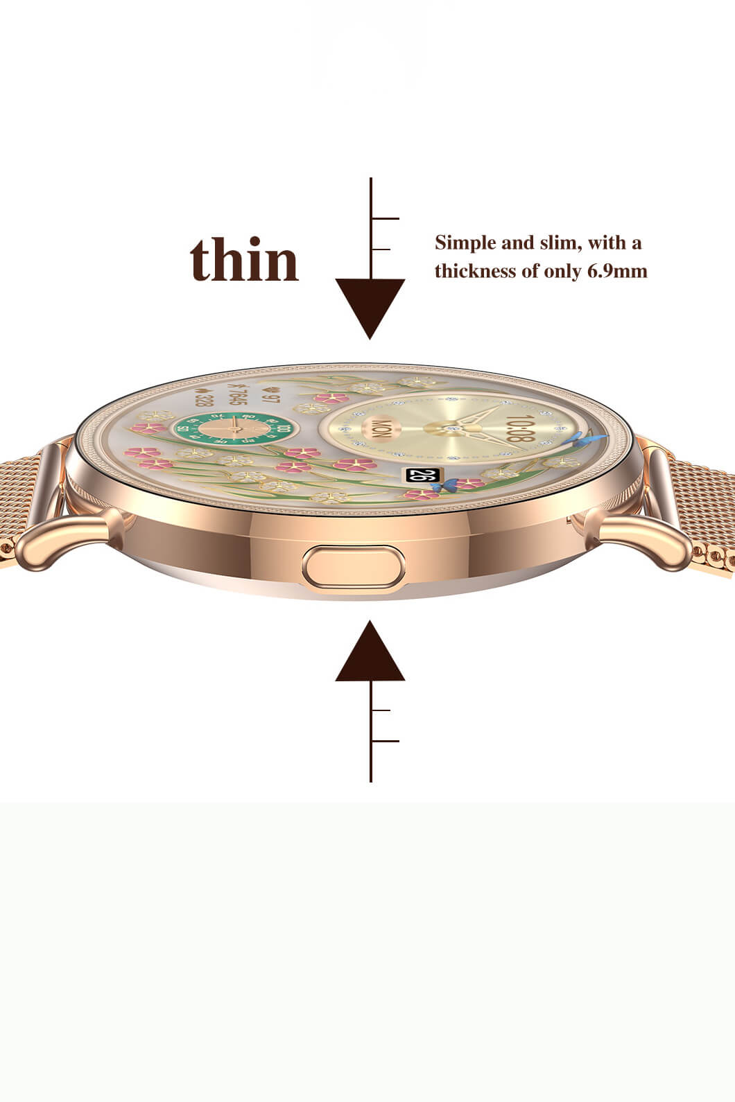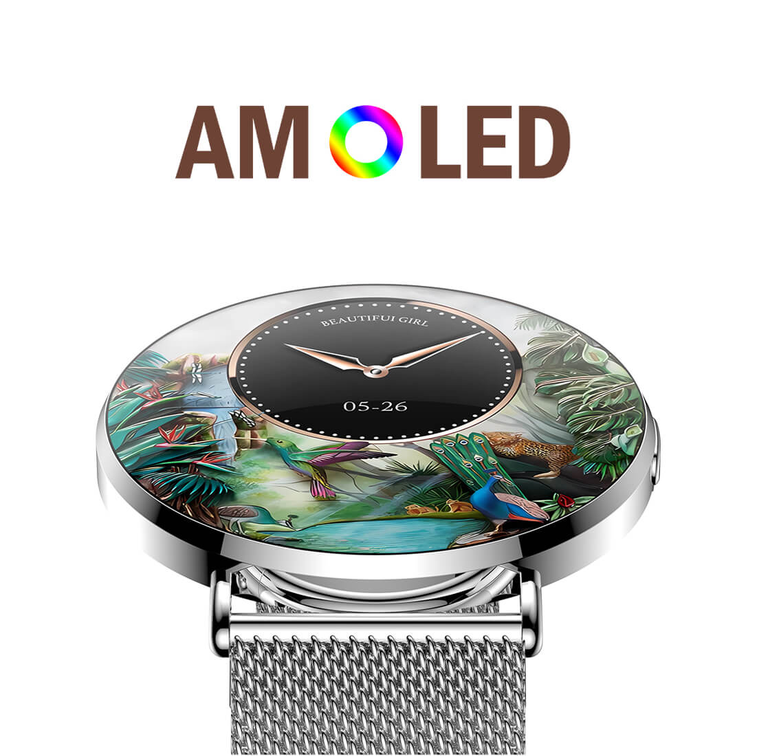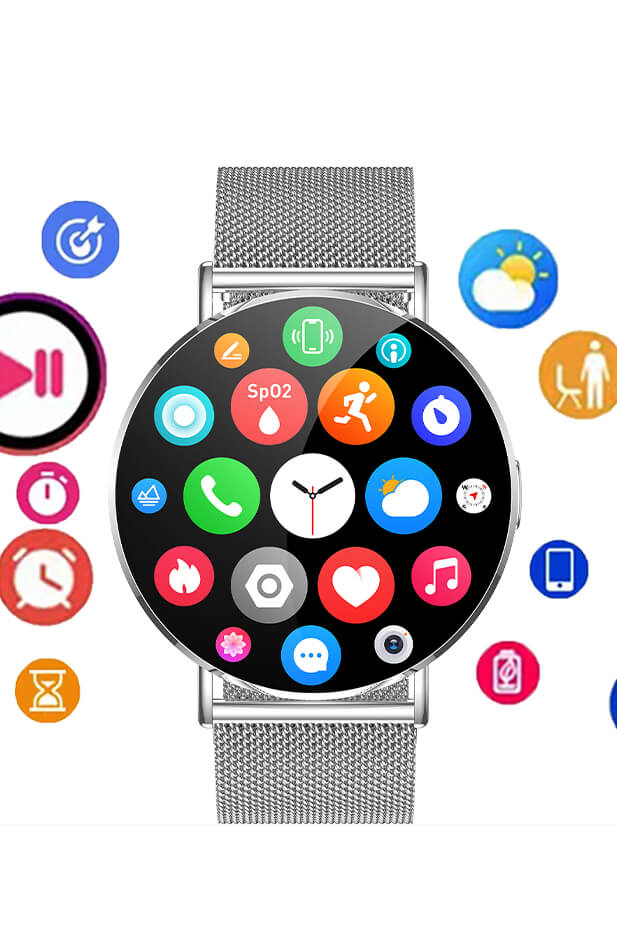Corpo interamente in metallo, ultra-sottile e ultra-leggero. Quadrante dinamico 3D. Attivazione schermo con il movimento del polso. Orologio sempre visibile a schermo spento。