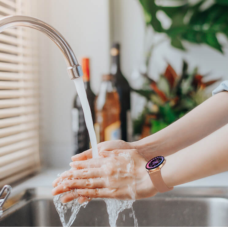 Può essere indossato durante il lavaggio delle mani, sotto la pioggia o durante l’attività sportiva. L’anello impermeabile di precisione integrato garantisce maggiore sicurezza nella vita quotidiana.