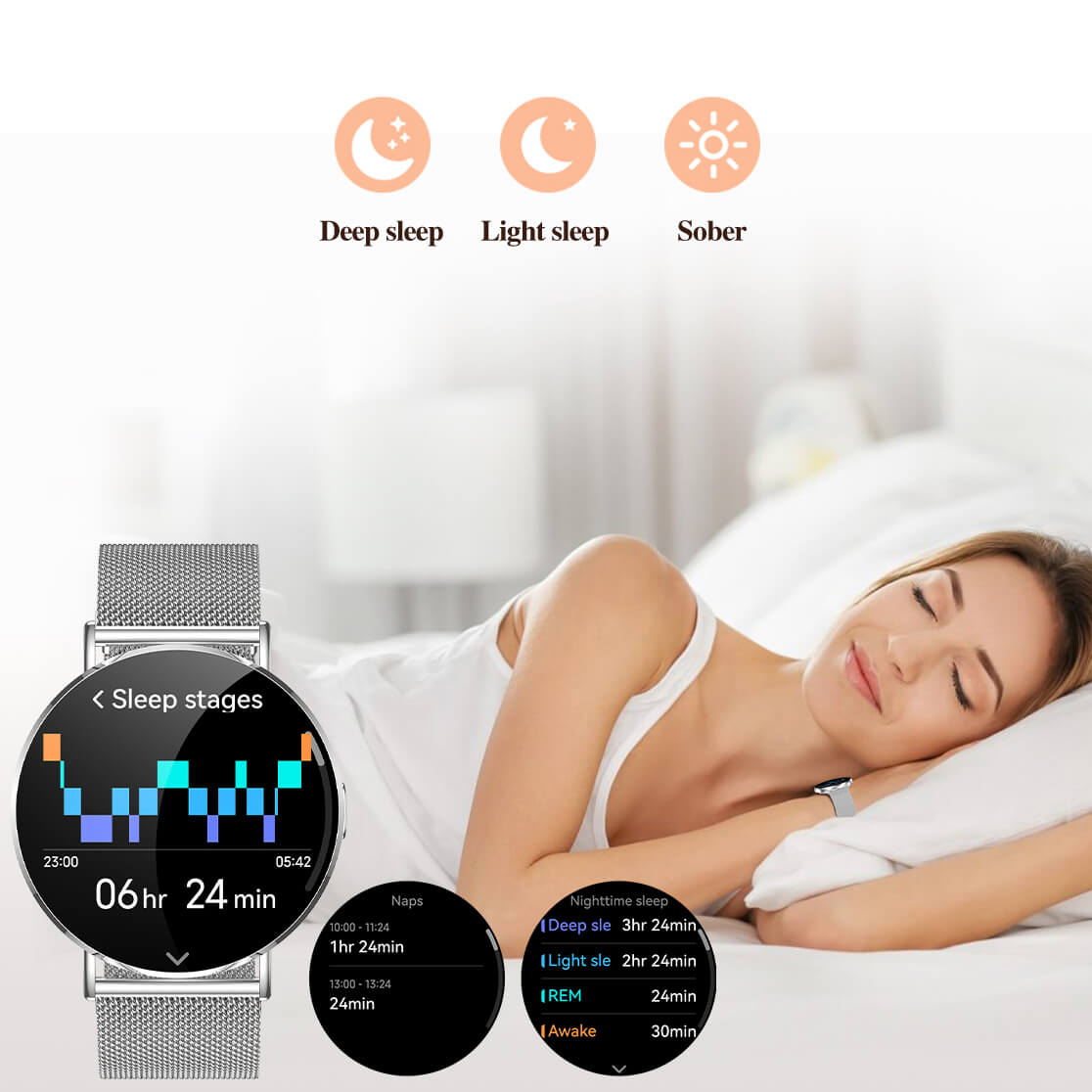 L’algoritmo Savi integrato riconosce anche i pisolini brevi, registra la durata del sonno e permette di monitorarne facilmente la qualità.